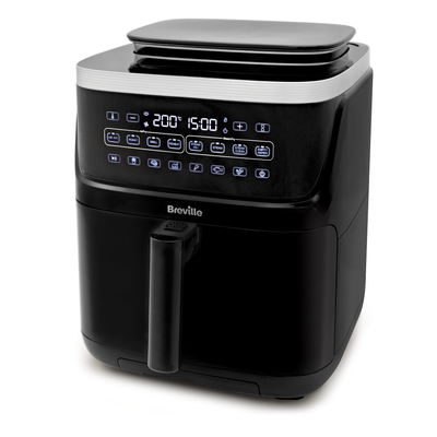 Enjoy freshly-prepared, tasty meals, the healthier way, with the Breville Halo Steam 7L digital air fryer. Using 360° air circulation and 99.5% less oil than standard 3 L Breville fryers, this air fryer oven is ideal for family meals. SteamFry technology expertly blends steaming and air frying modes, alternating whilst cooking for perfect results with a deliciously crisp outside and soft, tender centre. 6 cooking pre-sets for chips, chicken, vegetables, steak, fish and drumsticks offer total cooking versatility, allowing you to air fry, steam, SteamFry, roast, grill and reheat with just one appliance. The powerful 1700W provides rapid heating up to 200C, while the adjustable 90 minute timer and single-touch LED controls put you in charge. The 1.4L water tank also provides up to 90 minutes of continuous steam. Cleaning is easy thanks to the built-in Steam Clean function and dishwasher-safe detachable air frying basket and tray, plus the full instruction manual offers a range of tasty air fryer recipes to spark some dinner-time inspiration.