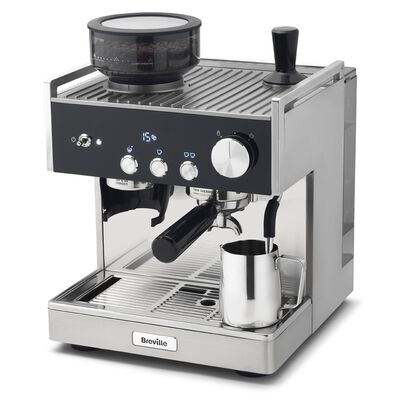 The Breville Barista Signature Espresso Maker delivers better taste by design, with a large 58mm group head inspired by commercial coffee machines to give better extraction for maximum espresso flavour, and a Dual Thermoblock heating system that brews and steams simultaneously so you can enjoy your coffee sooner. The intelligent integrated bean grinder provides feedback on the correct amount of coffee grounds for 1 or 2 shot dosage, with 30 grind settings for a totally customizable flavor profile depending on your coffee preferences. Less Mess Grind* anti-static technology also ensures that grounds stay where they belong (and not on your counter). Want to time your optimal extraction? The precision extraction timer displays real-time results clearly on the easy-to-read LED screen, so you can enjoy the most flavorful espresso every time you make it. For expertly-made lattes, flat whites and cappuccinos, the full-size cool touch steam wand produces a dry steam that creates velvety microfoam milk, or use the hot water dispenser to create a classic Americano.