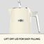 Rear water window and extra wide spout make accurate filling and pouring easy