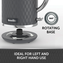 360 degree rotational base, push button lid, non-slip feet and cord storage