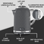 I have found the Water/cups measure on the side isn’t that accurate as I need to put more than what it says to get that many cups but I know where I need to fill it to now so not a problem. Would recommend if you’re after a classy and smart looking kettle!