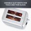 Variable width bread slots allow for both thick and thin slices; variable browning control lets you pick your preferred shade of golden brown