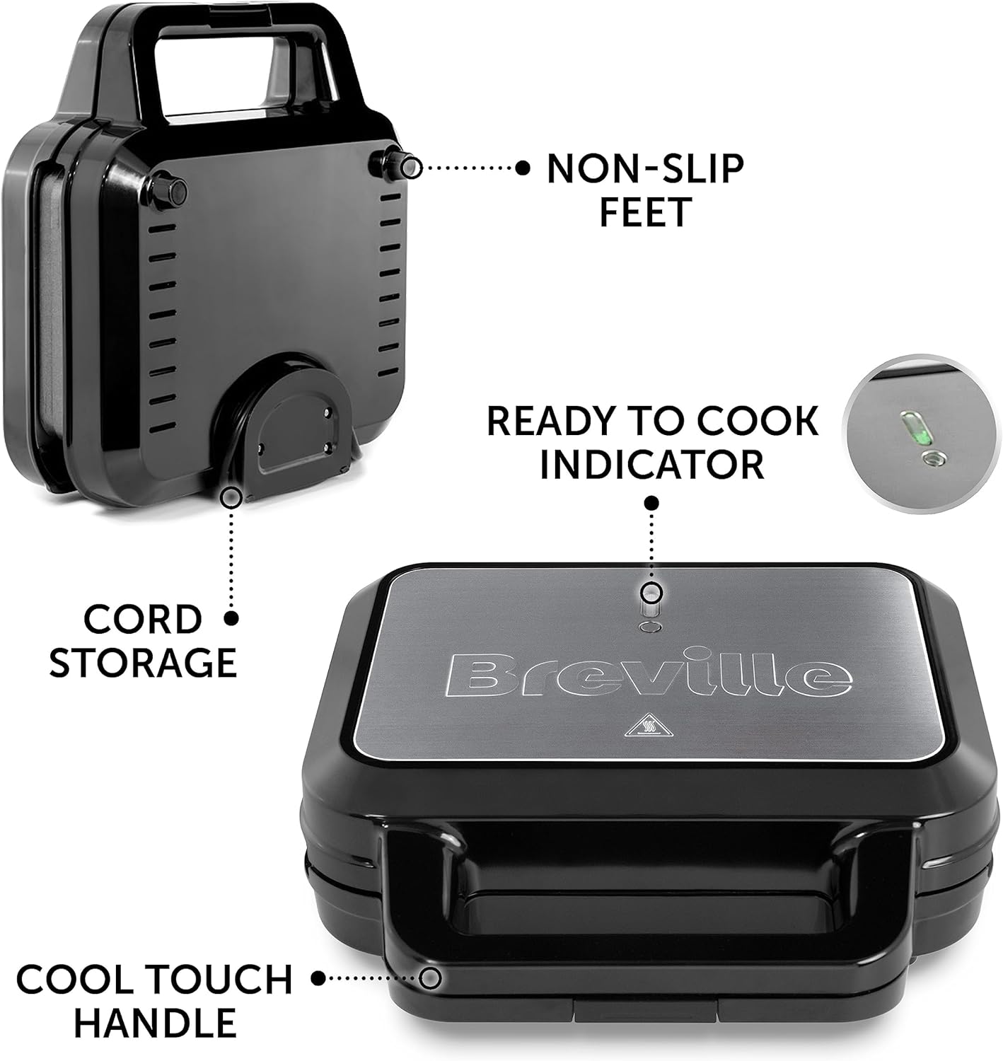 - READY-TO-COOK INDICATOR: Ensures the snack maker is always hot enough to cook your toasties, waffles and paninis right through