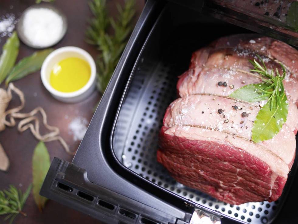 If you’re cooking meat such as chicken, steak, pork chops and salmon, most of these are juicy enough as they are, so require no added oil. Simply season them with salt and your chosen herbs and spices before placing them in your fryer. It’s a good idea to stick to dry seasonings here as less moisture leads to crispier results. If you’re planning on basting meat with any sauces, then wait until the last few minutes of cooking time.