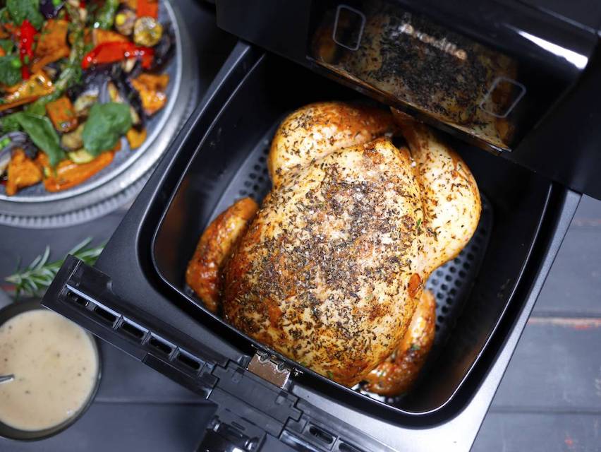 Vegetables like broccoli, sprouts and sweet potatoes work really well when air-fried; toss them with salt and a bit less oil than you usually would and you’ll get flavourful, crispy veg that tastes delicious!